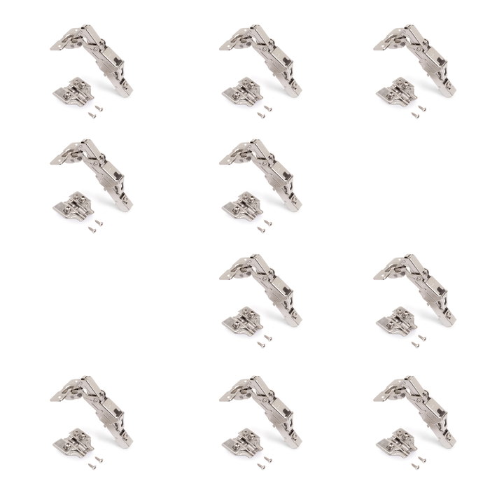 Emuca Lot de 10 charnières droites X91 à ouverture de 165 degrés avec fermeture amortie et embases euro, hauteur 0, acier, nickelé