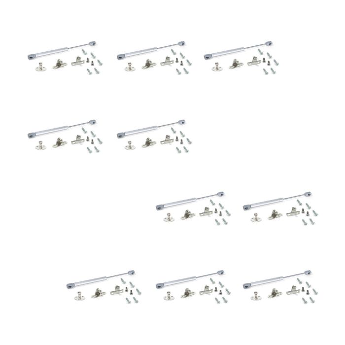 Emuca Lot de 10 pistons pour portes Relevable H, 5kg, course 100mm, avec loquets, acier et plastique, gris métallisé