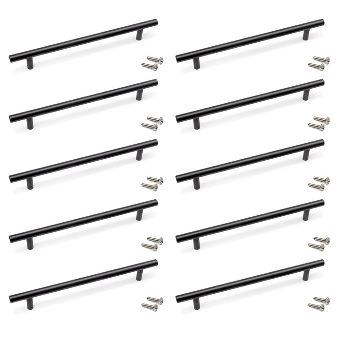 Emuca Lot de 10 poignées pour meubles Orlando, L336mm, entraxe 256mm, Acier, Peint en noir