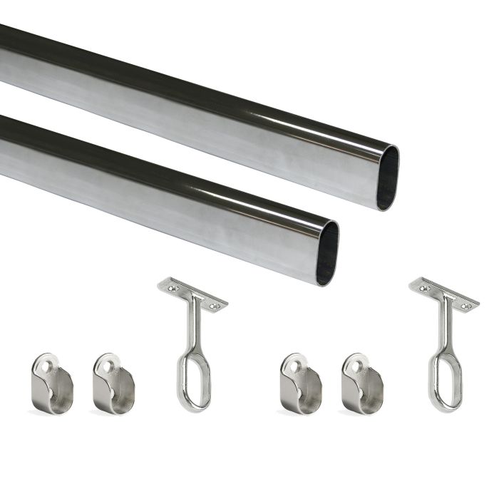 Emuca Lot de 2 rails ovales pour armoires 30x15mm longueur 1.15m avec supports, Acier et Zamak, Chromé