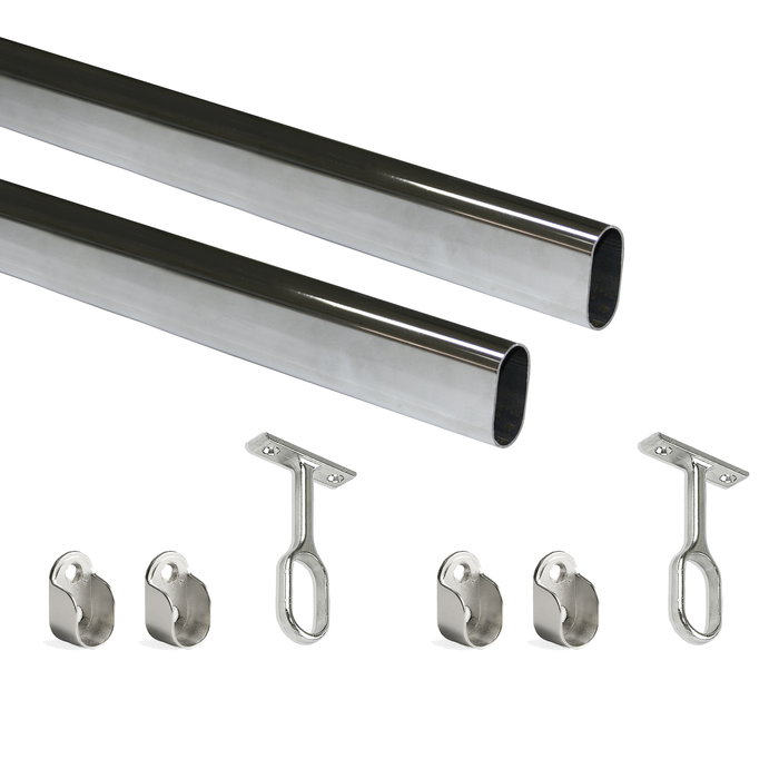 Le kit contient deux tubes de penderie 30x15 mm pour armoire, fabriquées en acier, et les supports latéraux pour son installation.