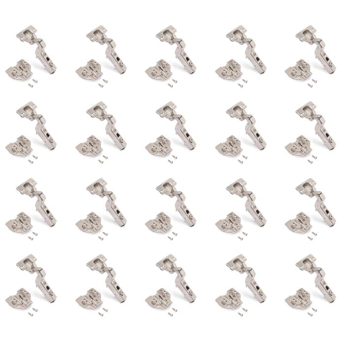 Emuca Lot de 20 charnières super coudées X91 avec fermeture amortie et embases Euro, Hauteur 0, Acier, Nickelé