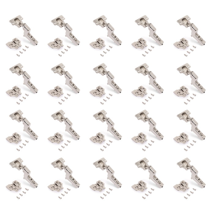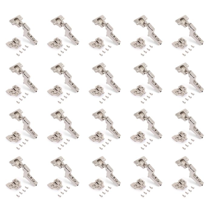 Emuca Lot de 20 charnières super coudées X92 avec fermeture amortie et embases à visser, Hauteur 0, Acier, Nickelé