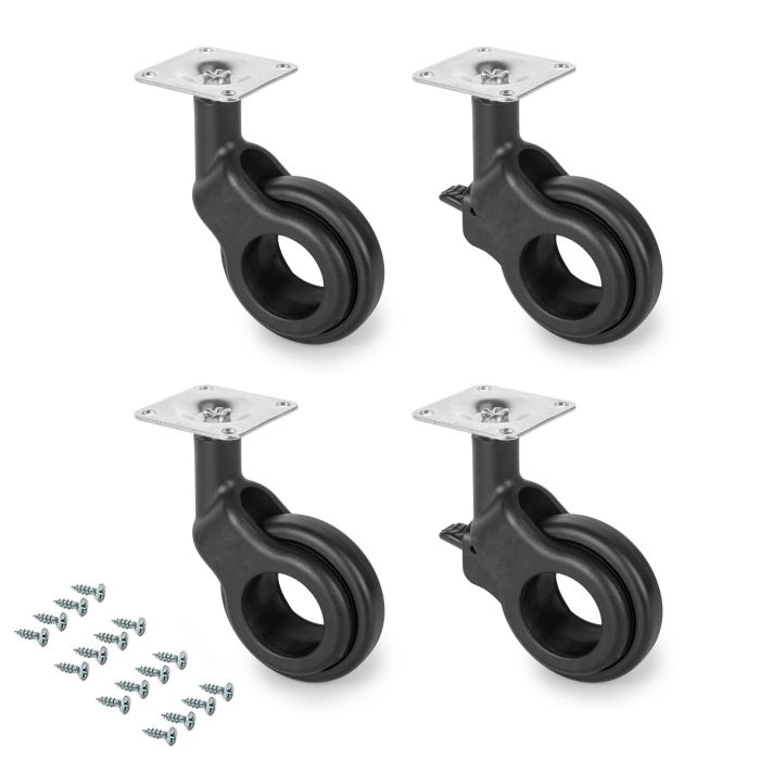 Les roulettes Hole 2 sont idéales pour tous les meubles de la maison et du bureau. Chaque kit contient 2 roulettes avec frein, 2 roulettes sans frein et les vis de montage. Les roulettes Hole 2 sont faciles à installer. Leurs roulements à billes permettent d'optimiser et renouveler vos meubles grâce à leur glissement doux et silencieux.
