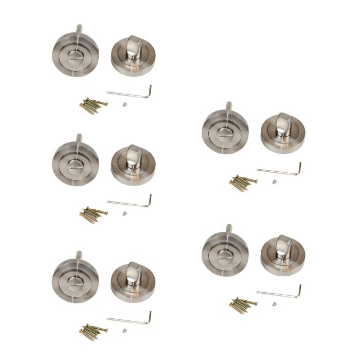 Jeu de 5 kits rosace de condamnation pour porte d'intérieur avec rosace ronde de diamètres 35 mm ou 50mm valables pour portes d'épaisseur entre 35mm et 45 mm.