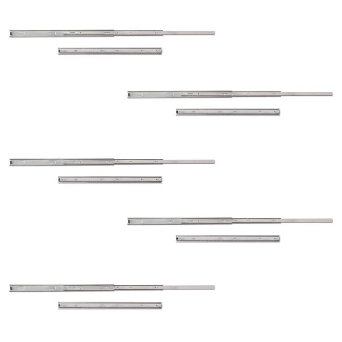 Emuca Lot de 5 coulisses pour tiroirs, roulement à billes, hauteur 45mm, profondeur 650mm, sortie totale, zingué