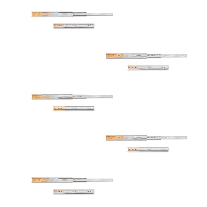 Emuca Lot de 5 jeux de coulisses de tiroirs, roulement à billes, hauteur 45mm, profondeur 350mm, sortie totale, fermeture amortie, Zingué
