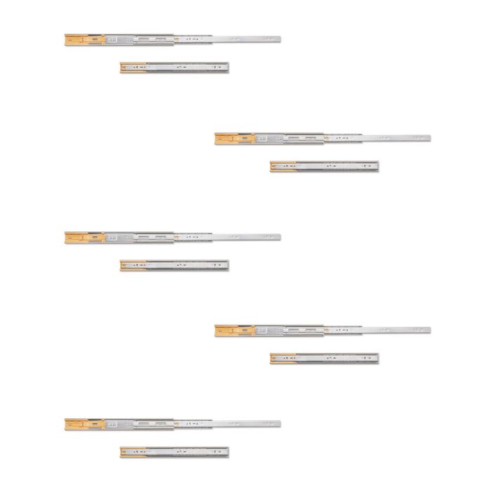 Emuca Lot de 5 jeux de coulisses de tiroirs, roulement à billes, hauteur 45mm, profondeur 400mm, sortie totale, fermeture amortie, Zingué