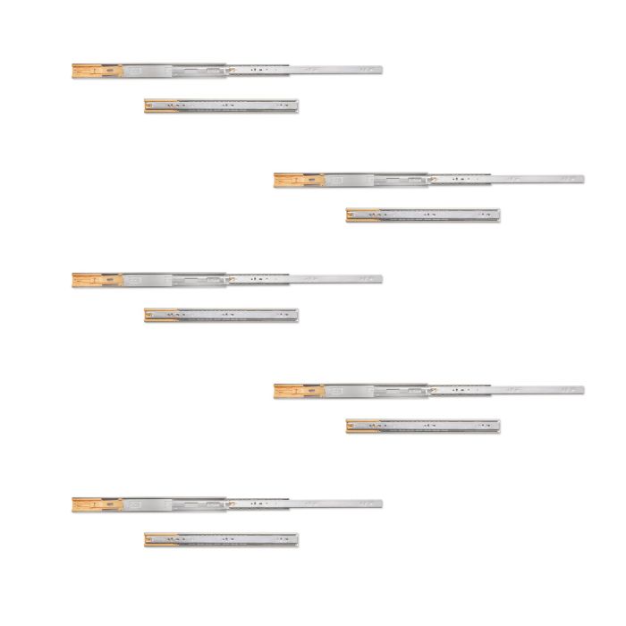 Emuca Lot de 5 jeux de coulisses de tiroirs, roulement à billes, hauteur 45mm, profondeur 450mm, sortie totale, fermeture amortie, Zingué