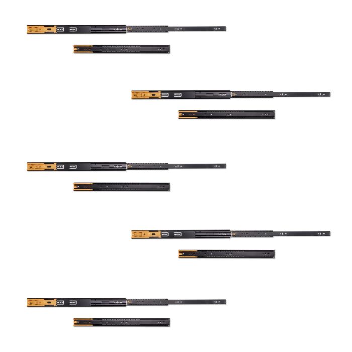 Emuca Lot de 5 jeux de Coulisses pour tiroirs, roulement à billes, hauteur 45mm, profondeur 500mm, sortie totale, fermeture amortie, Noir