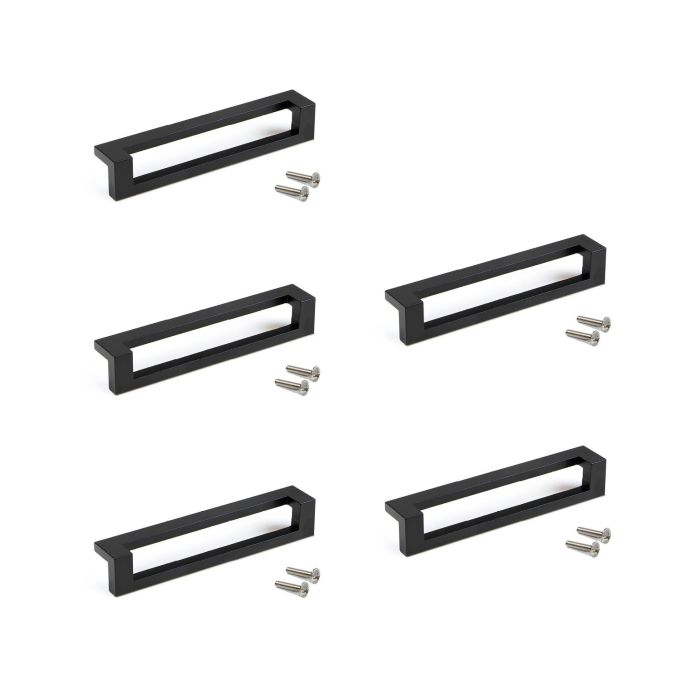 Emuca Lot de 5 poignées pour meubles Ribarroja, L144mm, entraxe 128mm, Zamak, Peint en noir