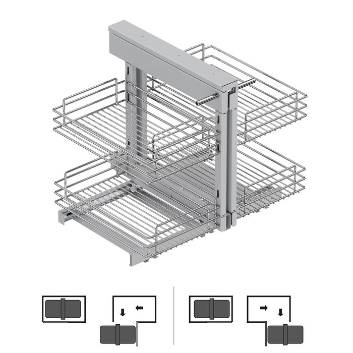 Meuble d'angle articulé coulissant Suprastar. Le meuble d'angle est conçu pour optimiser l'espace des coins et organiser toutes sortes de produits dans votre cuisine. Grâce à ses 4 paniers de grande capacité, vous pouvez ranger n'importe quel accessoire. A noter que le système Suprastar permet d'extraire les 4 paniers depuis l'intérieur du module pour atteindre et présenter rapidement n'importe quel accessoire.