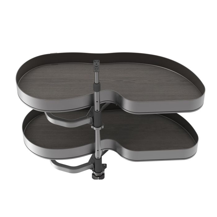 Emuca Systéme d’angle Lake Harmony pour meuble de cuisine, Droite, Hauteur réglable, Acier et Bois, Gris anthracite