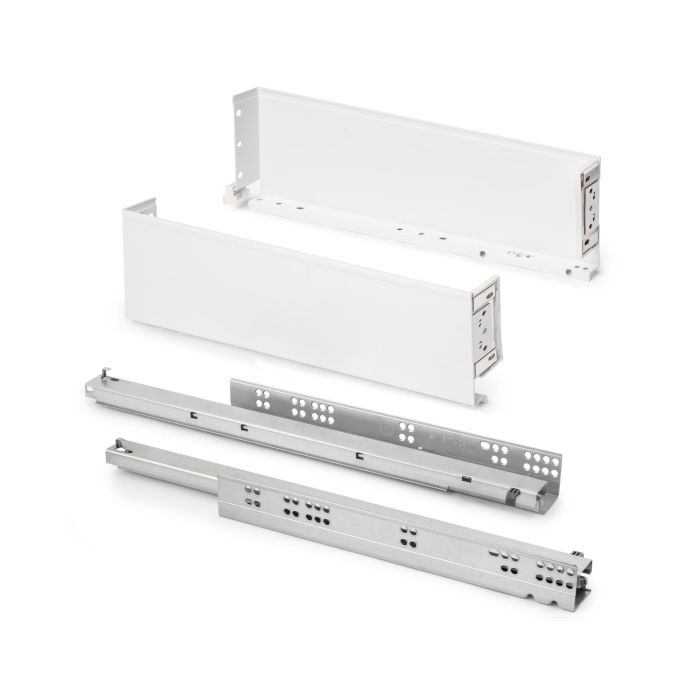Avec un design élégant et une hauteur de 122 mm, il offre un grand volume intérieur et une finition moderne. Son système permet le réglage de la façade du tiroir de ±2 mm en vertical grâce à une excentrique et de ±1,5 mm en horizontal. Il intègre également la coulisse Silver L à extraction totale, avec fermeture amortie et une capacité de charge de 25 kg, garantissant un mouvement fluide et stable.