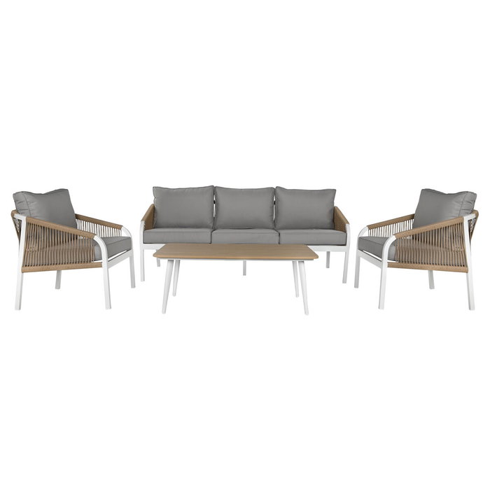 Vous voulez donner une touche d'originalité à votre maison ? Vous y arriverez grâce au Ensemble Table avec 3 Sièges Home ESPRIT Blanc Naturel Gris clair 189 x 73 x 84 cm (4 Pièces).