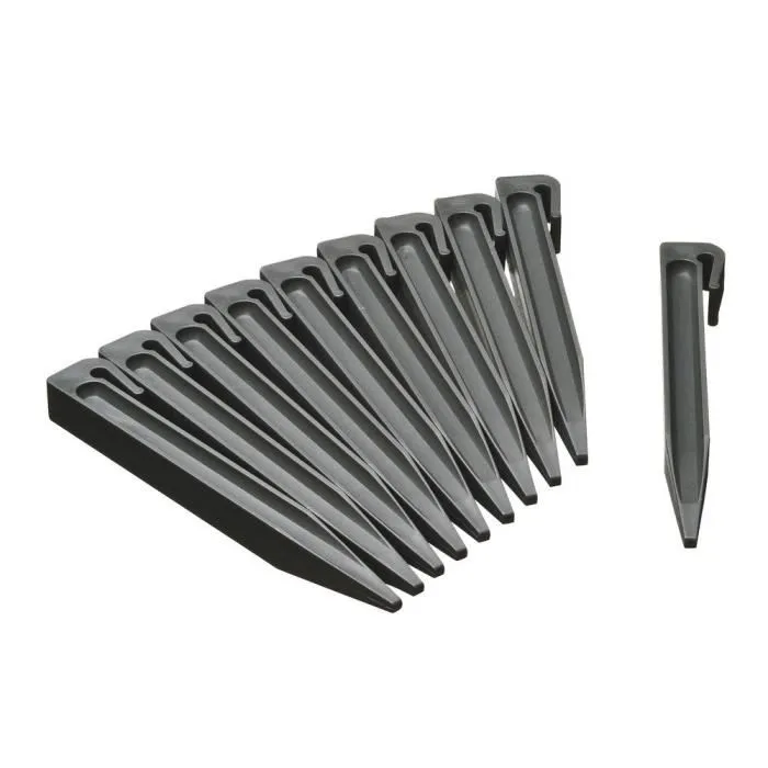 Nature - Lot de 10 piquets ancres pour bordures de jardin en polypropylène gris, fixation pour sols, 19.5 cm