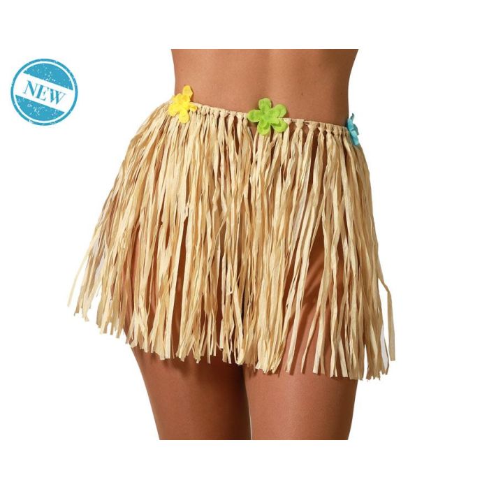 Falda hawaïenne courte 35 cm couleur naturel avec fleurs à la taille - Robe tropicale pour enfants fête carnaval école