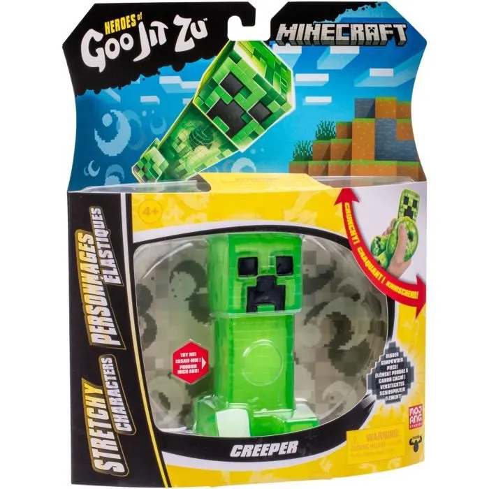Découvrez la figurine extensible Creeper de Minecraft par HERoeS OF GOO JIT ZU. Avec une taille de 11 cm, elle s'étire jusqu'a 3 fois sa taille et possede une texture élastique unique. Parfaite pour les fans de tous âges !
