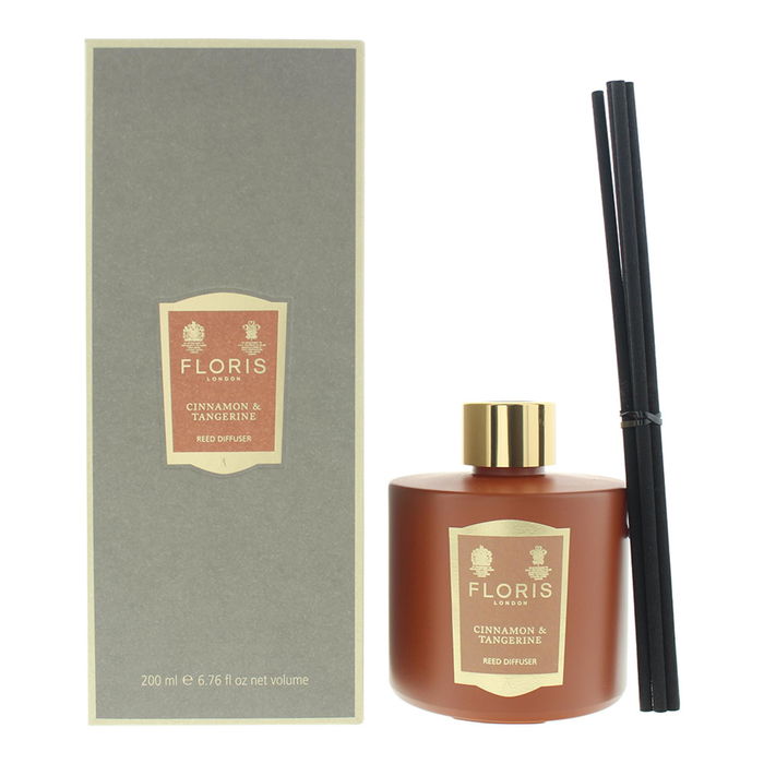 Diffuseur de parfum d'intérieur Floris Of London aux notes de cannelle et de mandarine, avec des roseaux. Parfait pour créer une ambiance chaleureuse et fruitée dans votre intérieur. Contenu : 200 ml. Conditionnement standard.