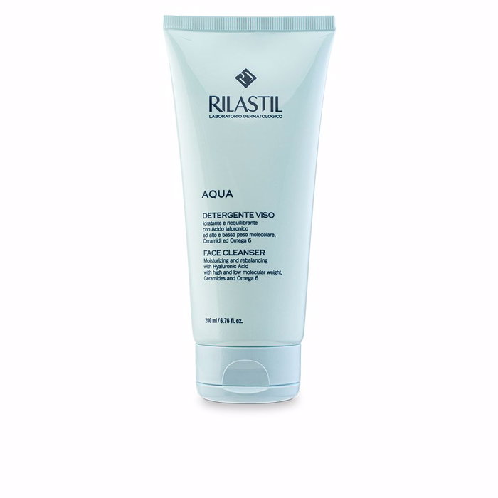 Rilastil AQUA Gel Nettoyant Visage Hydratant 200 ml, Acide Hyaluronique, Céramides, Omega 6