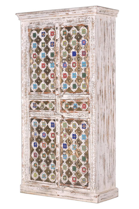Cette armoire élégante, fabriquée par GINER Y COLOMER, combine fonctionnalité et artisanat traditionnel. Sa structure est conçue en bois massif de manguier, agrémentée de détails en céramique (azulejos) et d'ornements en bronze, offrant un style unique et chaleureux.