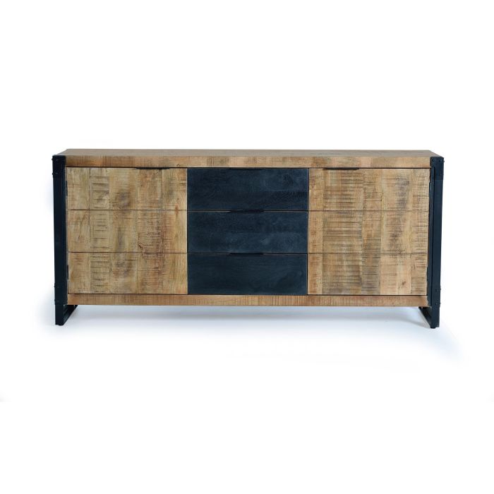 GINER Y COLOMER - Buffet 2 portes et tiroir en bois d'acacia et de manguier avec finition naturelle et métal noir - 80x180x45 cm