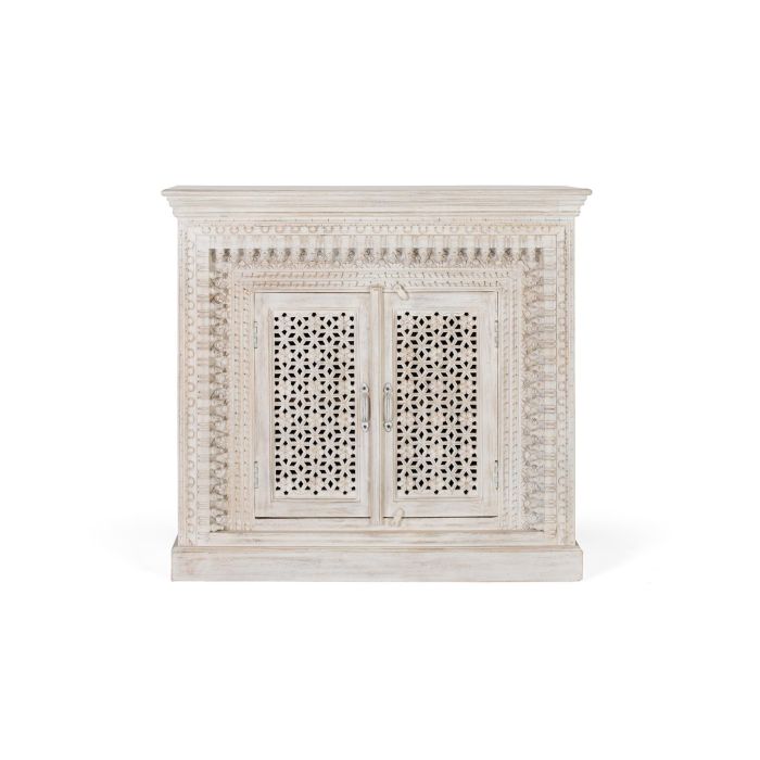 GINER Y COLOMER Buffet en bois de manguier massif sculpté main, finition blanc vieilli, 100x110x40 cm