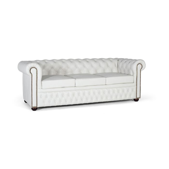 GINER Y COLOMER - Canapé Chesterfield 3 Places en Cuir Blanc - Canapé capitonné en cuir naturel avec accoudoirs surélevés et design intemporel