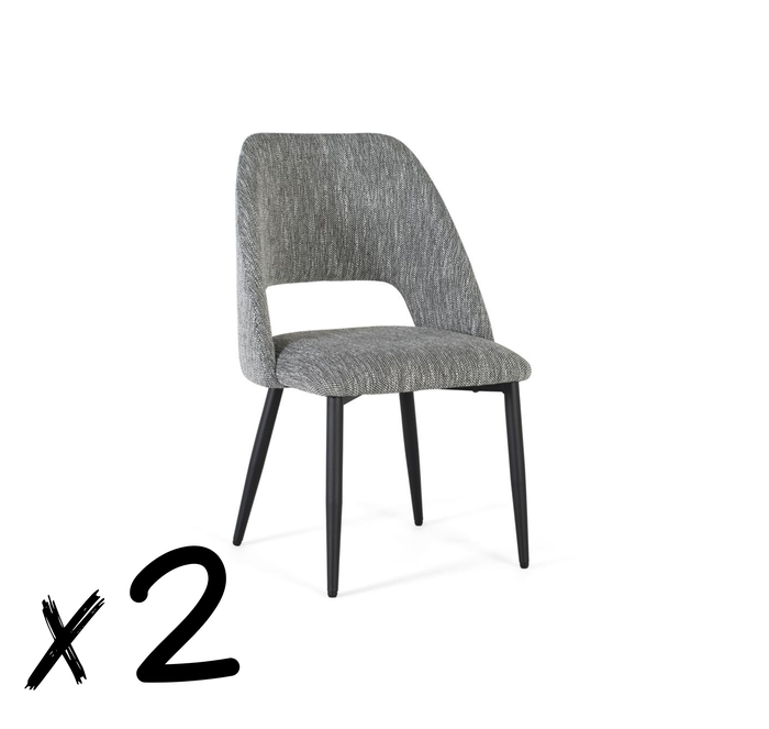 GINER Y COLOMER Lot de 2 chaises design en tissu gris avec structure en bois et pieds en métal noir - Dimensions (LxPxH): 57x52x91 cm