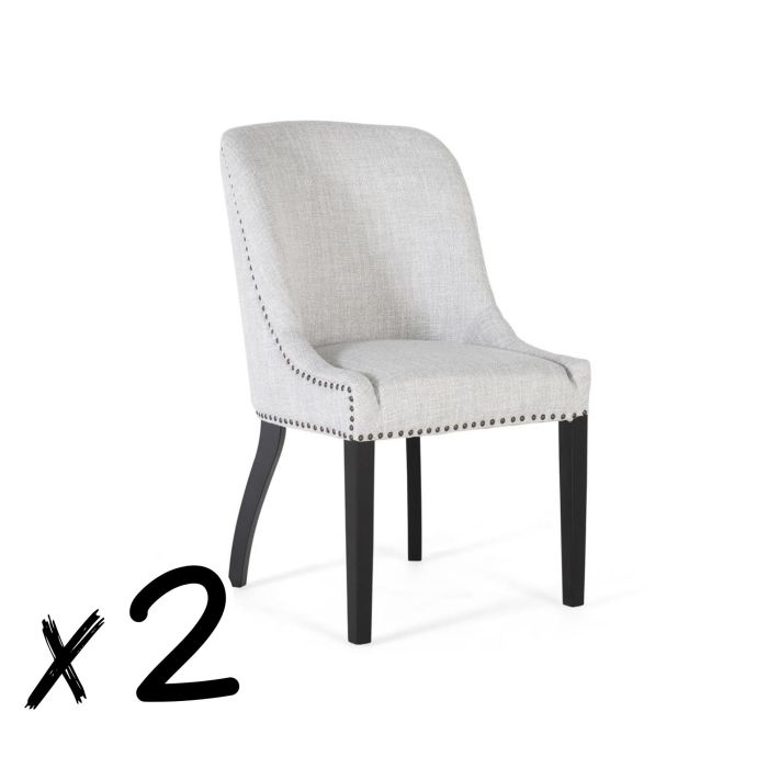 GINER Y COLOMER Lot de 2 chaises rembourrées en tissu gris avec assise 43x46 cm, dossier 50 cm et pieds en bois noir - Confort et design contemporain