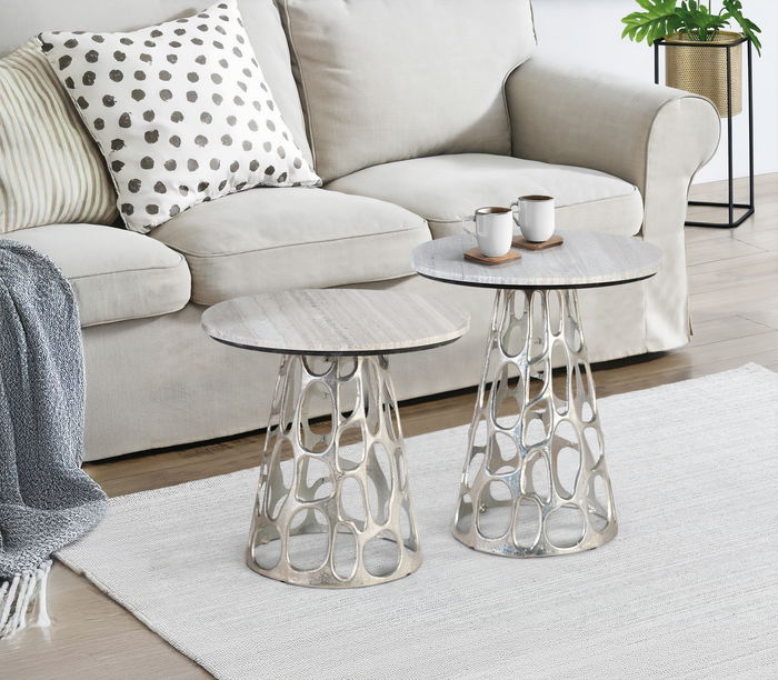 GINER Y COLOMER - Lot de 2 tables basses avec plateau circulaire en marbre et base en aluminium nickelé, gris et aluminium