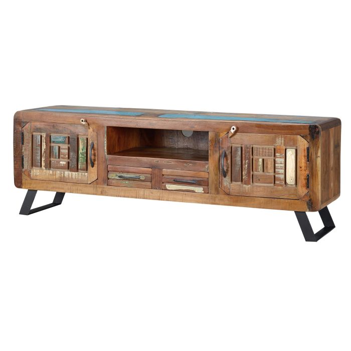 GINER Y COLOMER Meuble TV 2 portes et 2 tiroirs en bois massif recyclé avec pieds en fer, coloris multicolore - 160x54x40 cm