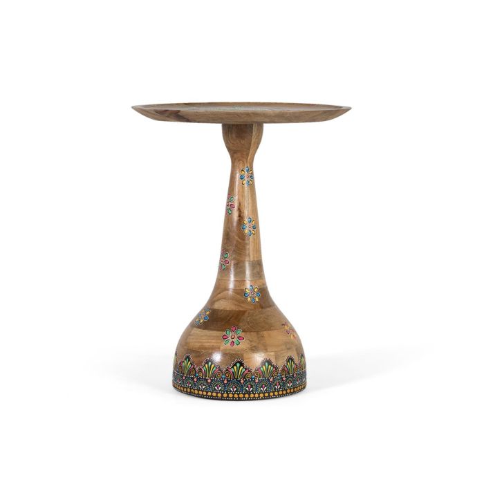 Cette table d'appoint ronde est une pièce artisanale qui allie la chaleur du bois à la beauté de détails peints à la main.