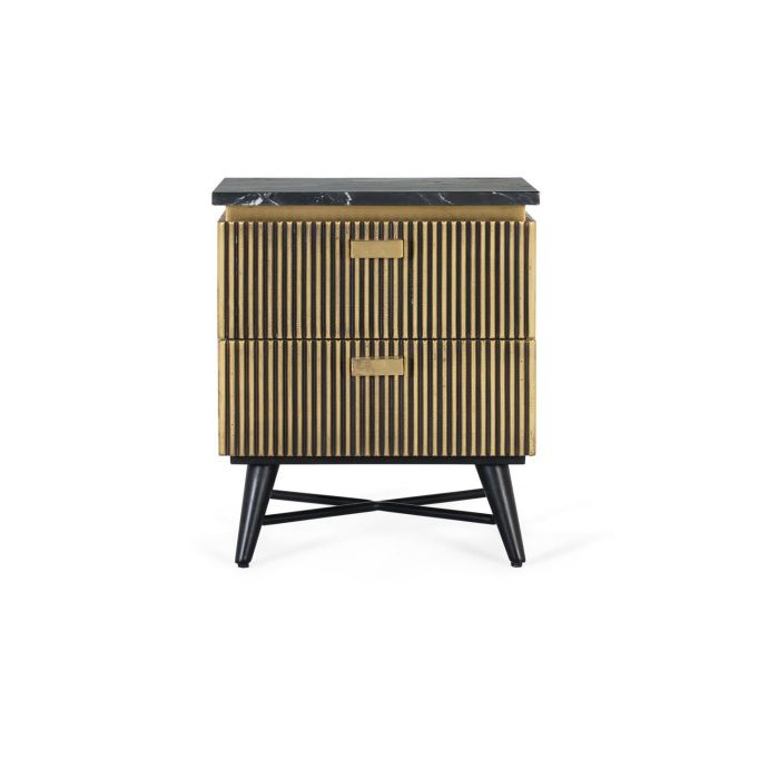 GINER Y COLOMER - Table de chevet 2 tiroirs artisanale en bois de manguier et marbre avec finition bronze - 50x40x60 cm