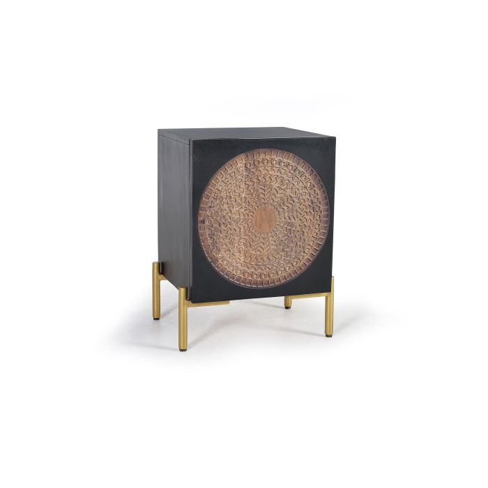 Table d'appoint élégante à une porte, alliant le charme naturel du bois de manguier à la solidité du métal. Sa finition en teinte noyer foncé apporte une touche chaleureuse et contemporaine à votre intérieur.