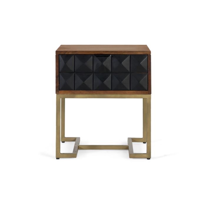 GINER Y COLOMER Table de nuit sculptée et fabriquée à la main en bois de manguier couleur noisette avec tiroir noir et pieds en fer doré design contemporain
