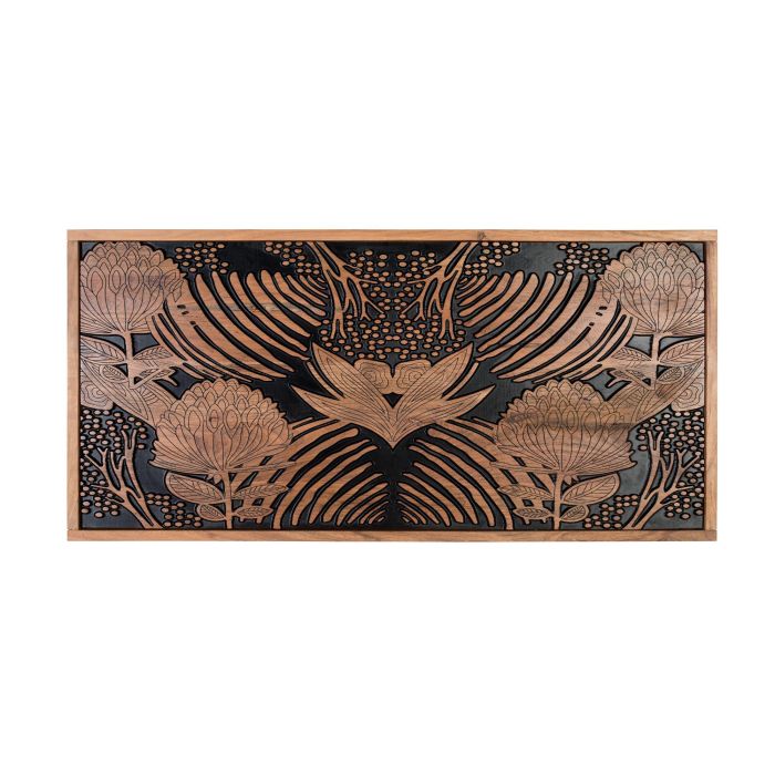 GINER Y COLOMER Tête de lit en bois massif d'acacia 166x81 cm, couleur naturelle et noir, avec nœuds et veines authentiques, livraison en 1 colis