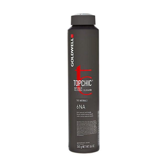 Teinture permanente pour cheveux Goldwell TopChic, nuance 6NA Dark Natural Ash Blonde (blond cendré naturel foncé). Flacon de 250 ml.