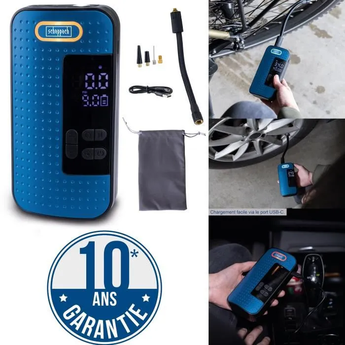 Scheppach - Compresseur d'air gonfleur électrique portable sans fil 10,3 bars / 150 PSI pour vélo, voiture, moto, sport - Réf. AC10/8V