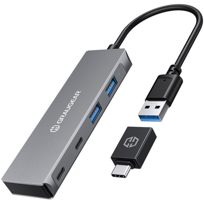 GrauGear G-HUB2A2C-AC Hub USB 3.2 Gen 1 (5 Gbit/s) 4 Ports - 2x USB-C + 2x USB-A en Aluminium Argent avec Câble de 20 cm