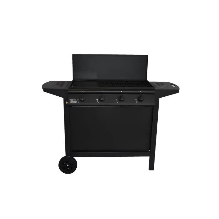 Grill Garden Barbecue à Gaz 4 Brûleurs, Noir, avec Capot de Protection et Allumage Piézoélectrique - Modèle 4B