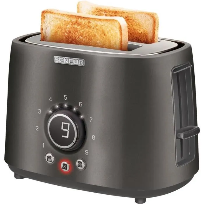 Grille-pain Sencor STS 6058BK - 9 niveaux de grillage, décongélation, réchauffage - Fentes longues 135 mm, puissance 1000 W, éjection automatique, plateau ramasse-miettes