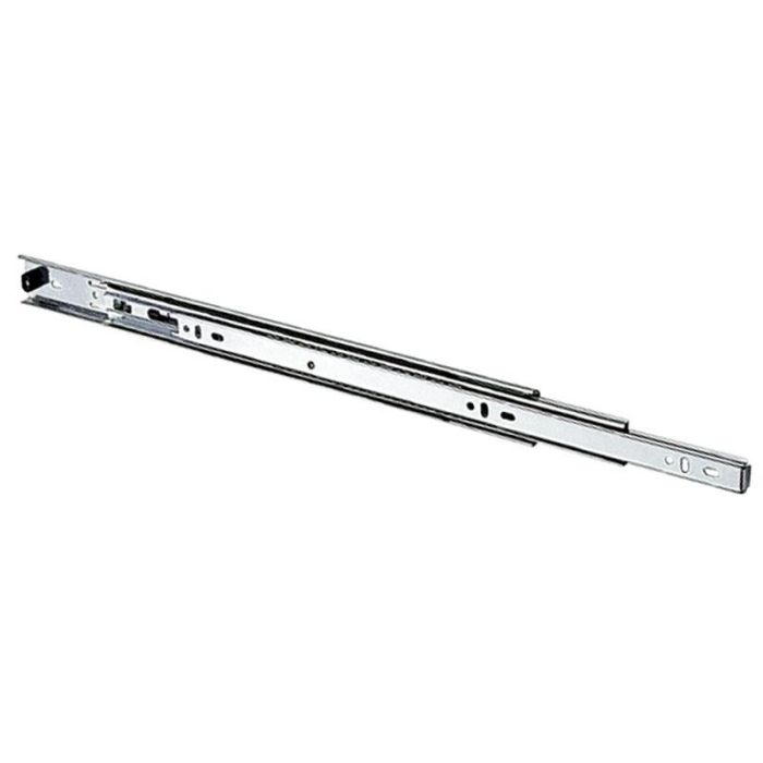Guías de bolas extracción total y cierre amortiguado Siva con 35 mm de altura de la marca de herrajes para muebles ALK. Esta guía es desmontable y está disponible en distintos largos.