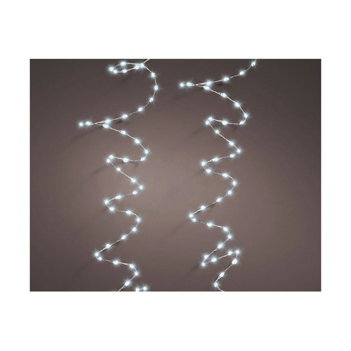 La guirlande lumineuse LED BigBuy Christmas est un élément décoratif conçu pour offrir un éclairage d’ambiance efficace et polyvalent, idéal pour les espaces extérieurs grâce à sa résistance IP44. Cette guirlande dispose d’un câble argenté de 14 mètres de longueur totale, divisé en deux parties : une première section de 5 mètres de câble d’alimentation et une distance entre la première et la dernière ampoule de 9 mètres, offrant une grande flexibilité pour la fixer à différents endroits. Elle comprend un total de 567 micro LED à lumière froide avec une luminosité très dense, réparties uniformément avec un espacement de 1,6 centimètre entre chaque ampoule, permettant un éclairage homogène et doux qui met en valeur sans éblouir. De plus, elle intègre 8 fonctions d’éclairage alternant différents modes de clignotement et d’effet fixe, facilitant la personnalisation de l’ambiance selon l’occasion ou la préférence. Ce produit est fabriqué aux Pays-Bas, garantissant la qualité des matériaux et de la finition du câble, parfaitement adapté à la décoration de Noël ou à tout type d’ambiance festive extérieure ou intérieure protégée. L’ensemble inclut un transformateur sécurisé pour une utilisation continue et efficace. Globalement, la guirlande BigBuy Christmas constitue une solution technique et esthétique pour ceux qui recherchent un éclairage LED haute densité, résistant aux intempéries et offrant plusieurs options de fonctionnement pour décorer avec élégance et efficacité.
