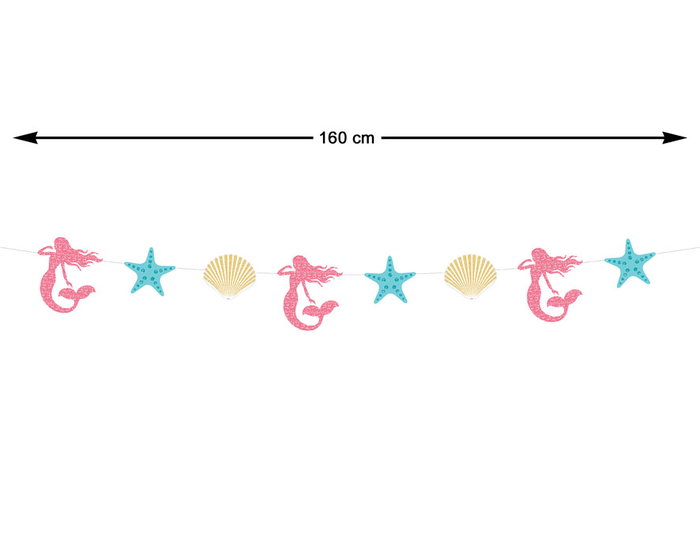 Guirlande de sirènes, étoiles et coquillages sur fond marin, d'une longueur de 160 cm, parfaite pour ajouter une touche enchantée à votre décoration.