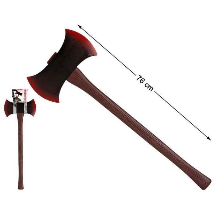 Hacha de fantaisie pour déguisement - Hache de combat à double lame noire et marron (76 cm) avec effet de sang pour costume d'assassin, Halloween et événements terrifiants