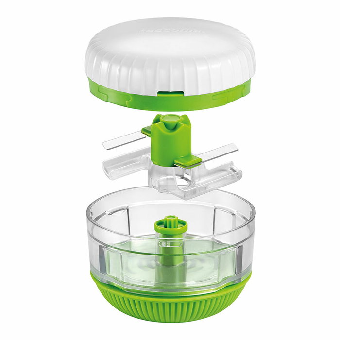 Le hachoir Handy de Tescoma est un ustensile de cuisine pratique et efficace, conçu pour faciliter la préparation des aliments grâce à un système rotatif qui permet de hacher rapidement et uniformément herbes, ail, oignons et autres ingrédients à la taille souhaitée. Fabriqué en plastique résistant avec un traitement antidérapant, ce hachoir offre une manipulation sûre et confortable lors de son utilisation. Ses lames en acier inoxydable de haute qualité garantissent une coupe précise et durable, conservant leur tranchant même après de multiples usages. De plus, la production en Espagne assure un standard de fabrication contrôlé et fiable. L’association d’un design compact, fonctionnel et de la couleur verte caractéristique en fait un accessoire polyvalent adapté à toute cuisine, notamment pour ceux qui apprécient la rapidité et la simplicité dans la préparation d’ingrédients frais. Ce produit bénéficie d’une garantie de 3 ans, ce qui confirme la confiance de Tescoma en sa durabilité et sa qualité. En somme, le hachoir Handy est un outil robuste et pratique, idéal pour faciliter les tâches culinaires quotidiennes sans complication.