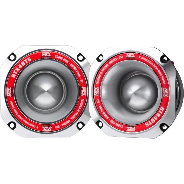 Le tweeter MTX RTX4BTs offre une haute efficacité sonore avec une puissance minimale. Idéal pour les installations SQL et les systemes de sonorisation, il produit un son puissant et vivant. a coupler avec un médium RTX654 ou RTX84 pour des performances optimales.