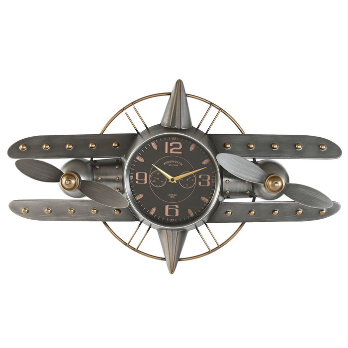 Horloge Murale Home ESPRIT Doré Argenté Métal Avion Vintage 77,5 x 15 x 46 cm