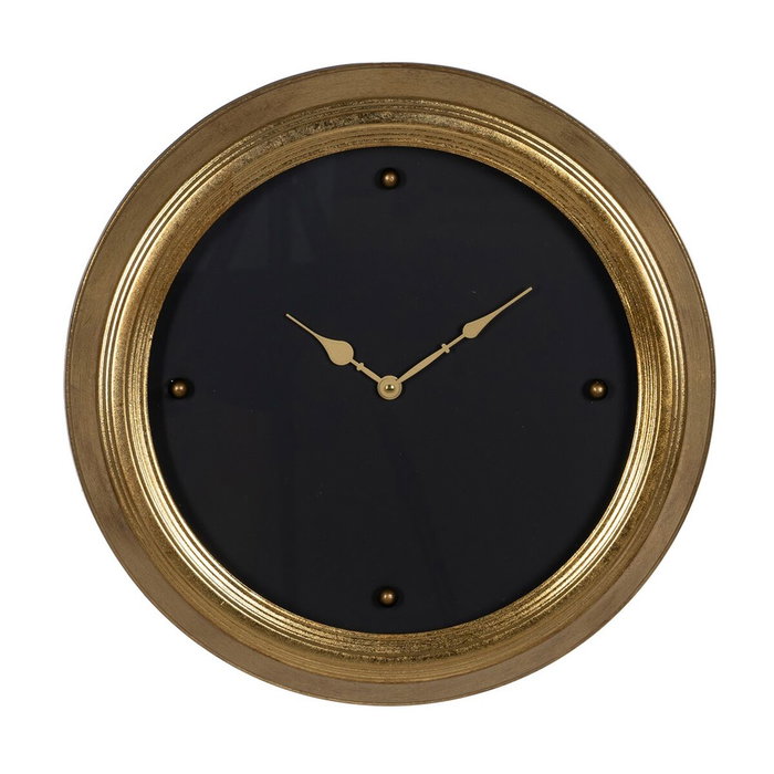 Horloge Murale Noir Doré PVC Verre Fer Bois MDF 46 x 6 x 46 cm